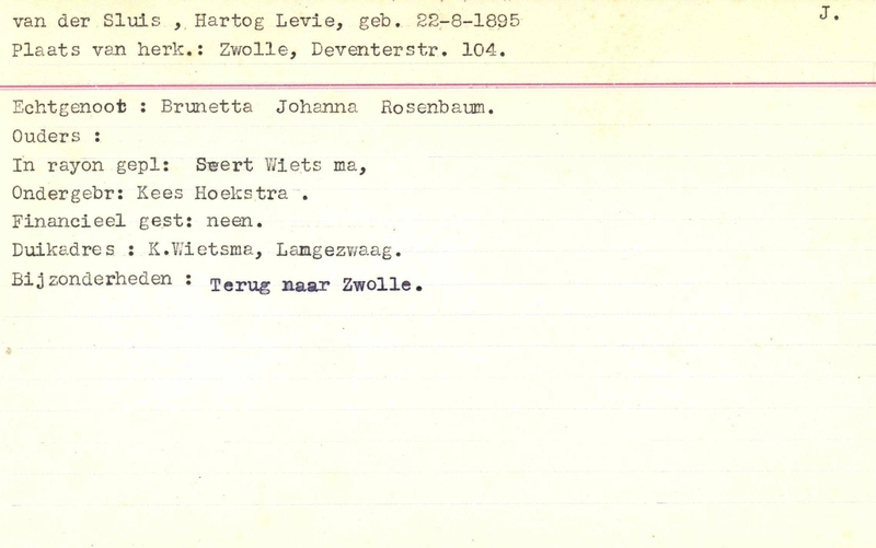 Onderduikinschrijving van Hartog Levie van der Sluis