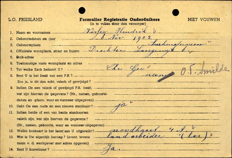 - Oorspronkelijk adres: Langewyk 6, Drachten - Reden onderduik: arbeidsinzet - Overige opmerkingen: Bijzondere opmerkingen: P.B.: neen, "O.T. Smilde
