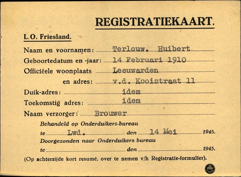 Onderduikregistratie van Huibert Terlouw