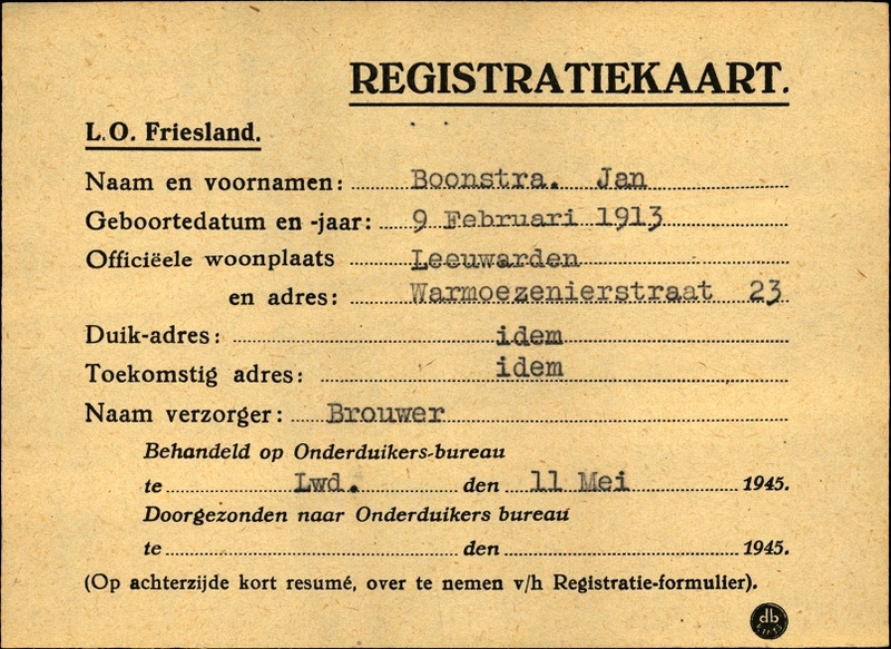 Duikadres: Warmoezenierstraat 23, Leeuwarden - Oorspronkelijk adres: Warmoezenierstraat 23, Leeuwarden - Reden onderduik: arbeidsinzet - Overige opmerkingen: Achterkant beroep: Bakker