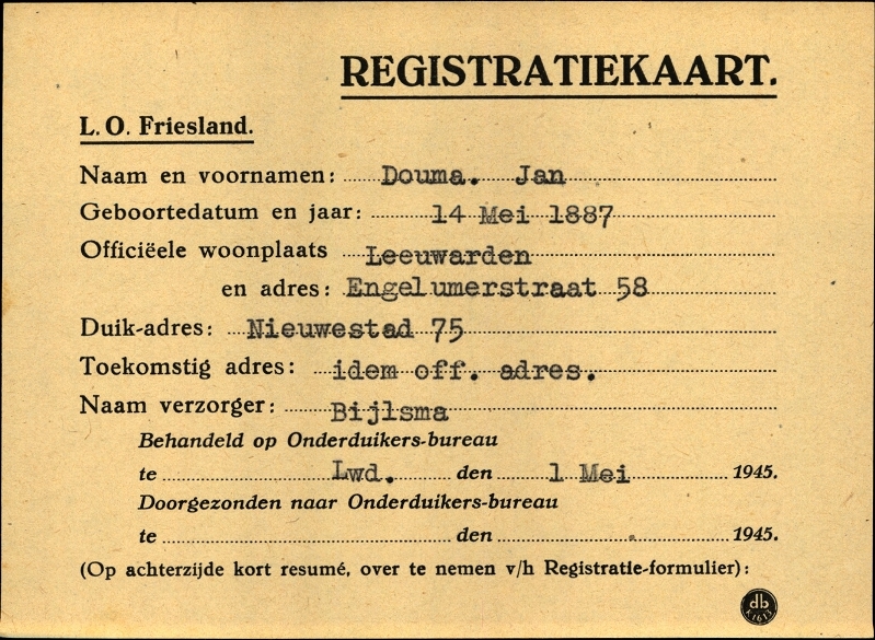 Onderduikinschrijving van Jan Douma