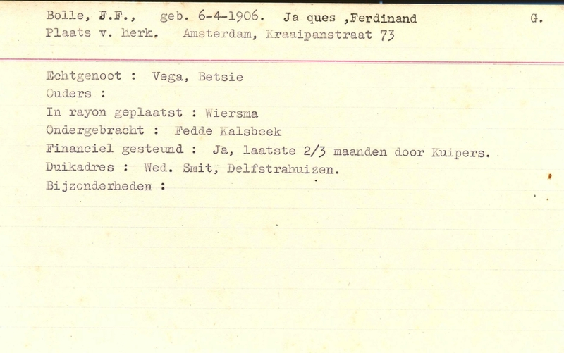 Onderduikinschrijving van J.F. Jaques, Ferdinand Bolle