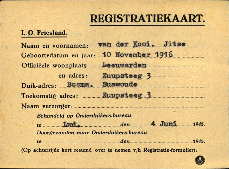 Onderduikinschrijving van Jitse van der Kooi