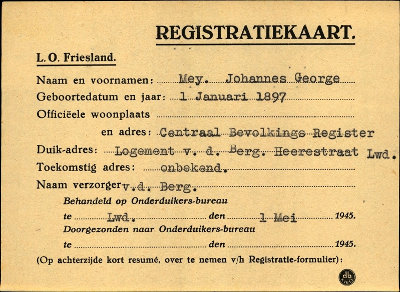 Onderduikinschrijving van Johannes George Mey