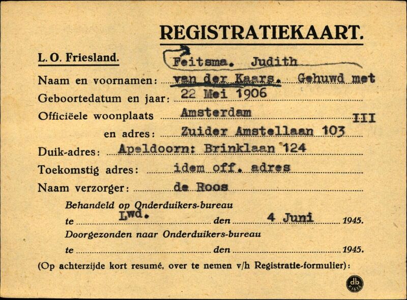 Onderduikregistratie van Judith van der Kaars