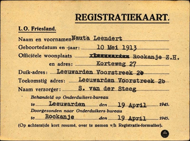 Duikadres: Stationsstraat, Buitenpost - Oorspronkelijk adres: Bovenlangewijnseweg 36, Huizen (Noord-Holland) - Reden onderduik: jodenvervolging - Overige opmerkingen: Achterkant beroep: Gem. ambtenaar Soc. zkn.