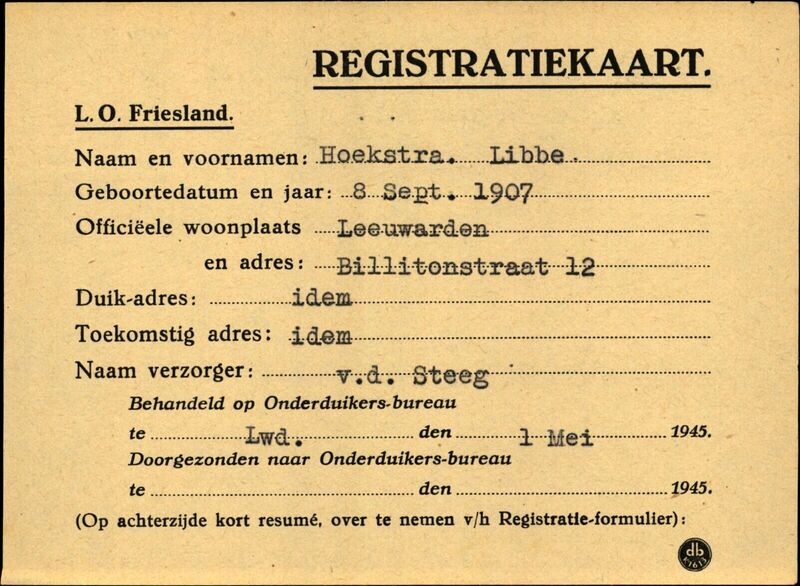 Onderduikinschrijving van Libbe Hoekstra