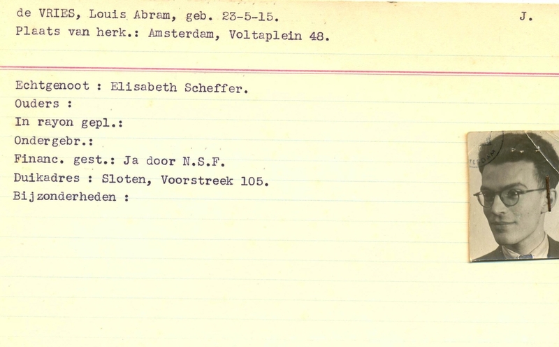 Onderduikinschrijving van Louis Abram de Vries