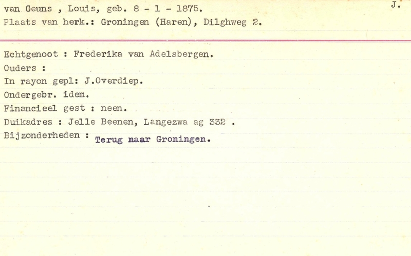 Duikadres: 332, Langezwaag - Oorspronkelijk adres: Dilgtweg 2, Haren (Groningen) - Overige opmerkingen: Bijzonderheden: Terug naar Groningen