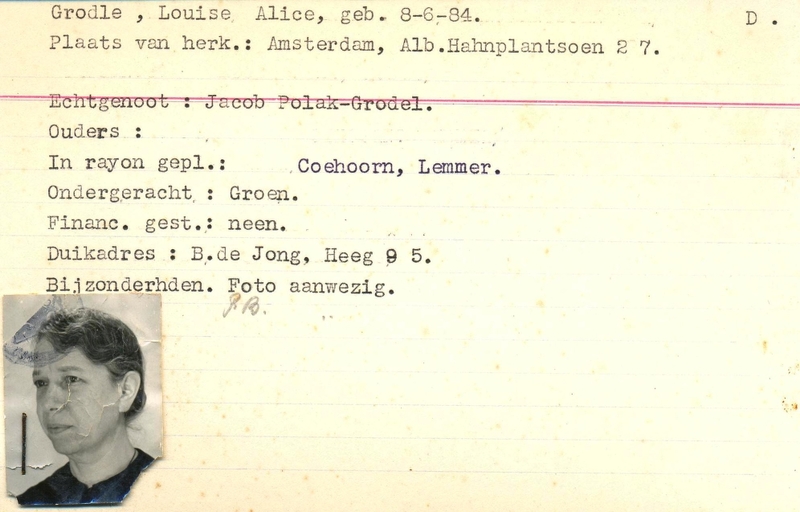 Duikadres: 95, Heeg - Oorspronkelijk adres: Albert Hahnplantsoen 27, Amsterdam - Overige opmerkingen: Bijzonderheden: Foto aanwezig