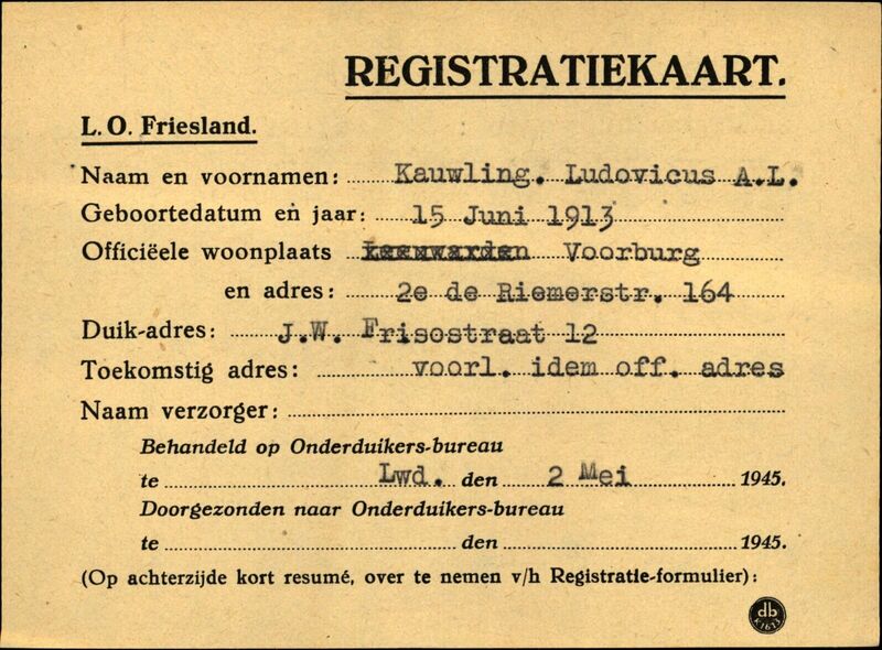 Onderduikinschrijving van Ludovicus A.L. Kauwling