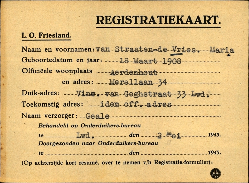 Onderduikregistratie van Maria van-de Straaten- Vries