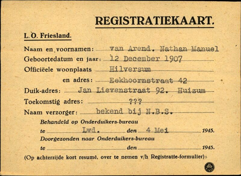 Onderduikinschrijving van Nathan Manuel van Arend