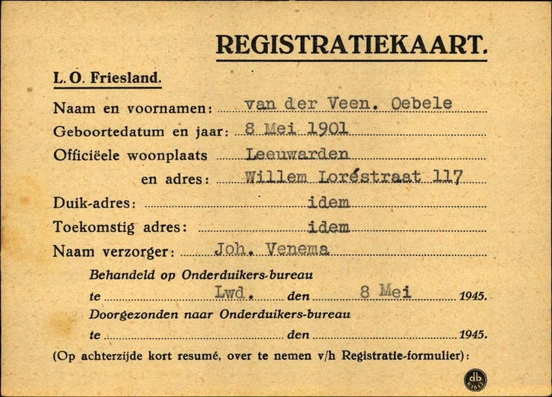 Onderduikinschrijving van Oebele v.d. Veen