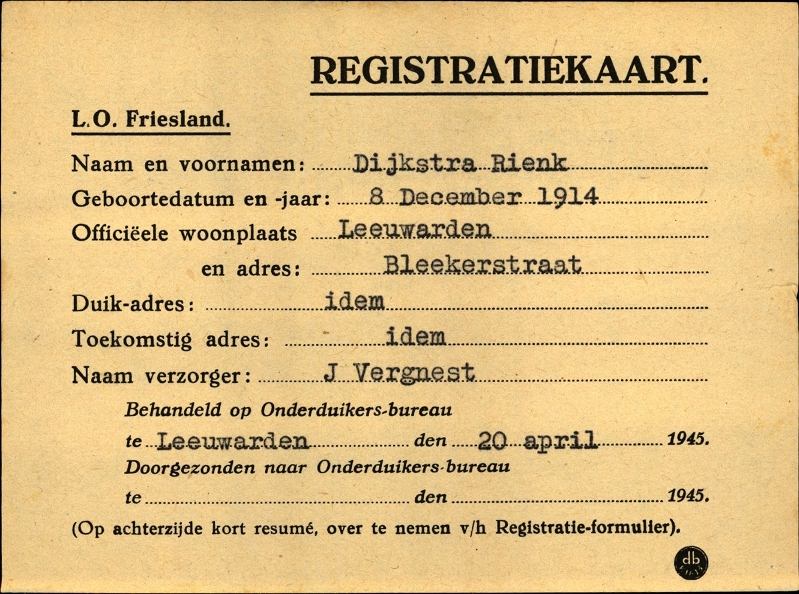 Onderduikinschrijving van Rienk Dijkstra
