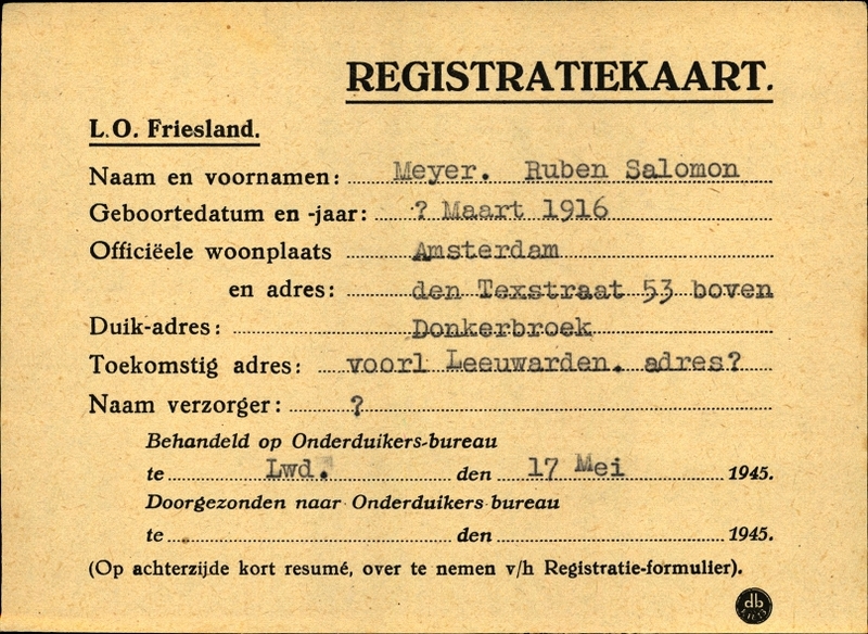 Duikadres: Donkerbroek - Oorspronkelijk adres: Den Texstraat 53 boven, Amsterdam - Reden onderduik: jodenvervolging