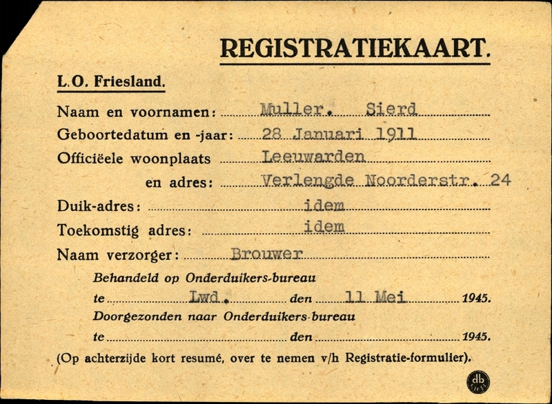 Onderduikinschrijving van Sierd Muller