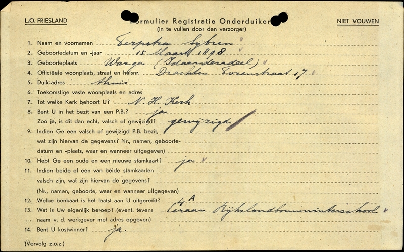 Duikadres: Torenstraat 17, Drachten - Oorspronkelijk adres: Torenstraat 17, Drachten - Reden onderduik: arbeidsinzet
