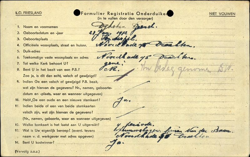 Onderduikinschrijving van Tjeerd Dijkstra