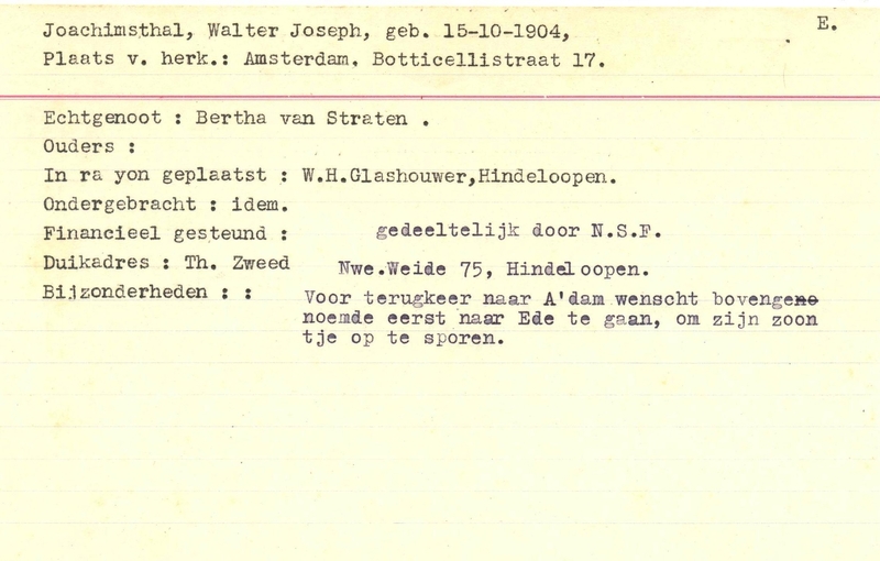 Onderduikinschrijving van Walter Joseph Joachimsthal