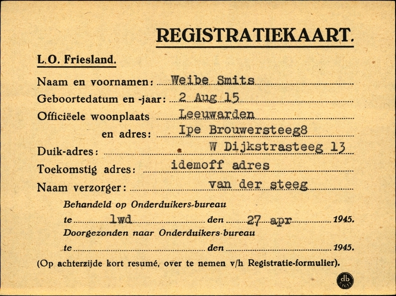 Onderduikregistratie van Weibe Smits
