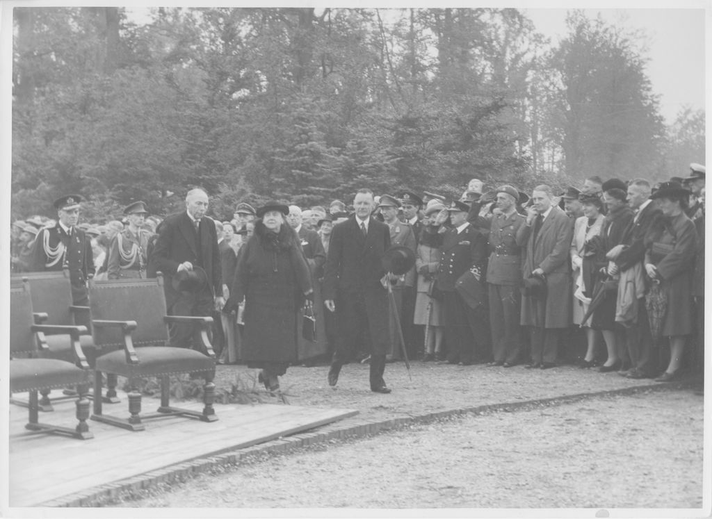 Onthulling van het Airborne Monument te Oosterbeek (Utrechtseweg) door Koningin Wilhelmina