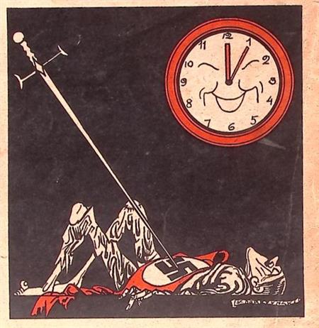 Op deze prent is Adolf Hitler afgebeeld. Adolf Hitler was een Duitse politicus die van 1934 tot 1945 de rol van staatshoofd van Duitsland vervulde. Een thema in deze prent is Oorlog. Oorlog is een gewapend conflict dat plaatsvindt tussen ten minste twee partijen, zoals staten of volkeren. De swastika is een oud symbool dat in verschillende Euraziatische culturen voorkomt en zijn oorsprong vindt in de Indusbeschaving. Het werd door de nazi's tijdens de Tweede Wereldoorlog als hakenkruis gebruikt.Anti Duitse spotprent - De as.Prent afkomstig uit spotprent boek Sein Kampf. Gedrukt in 1944 in Jeruzalem, gemaakt door Kunstenaar Stanislaw Dobrzynski. Bijzonder boek met een lage opgave, uitgegeven terwijl de oorlog nog in volle gang was.De prent heeft een afmeting van ca. 15 bij 20 centimeter.