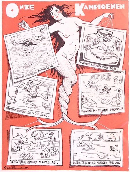 Nederlandse politici bij het zwembad op spotprent