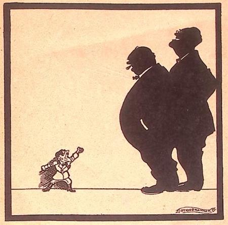 Getoond op deze prent is Franklin Delano Roosevelt. Een thema in deze prent is NRA. De National Recovery Administration (NRA) was een programma opgericht in 1933 door president Franklin D. Roosevelt, met als doel de 'moorddadige concurrentie' te verminderen door samenwerking tussen industrie, arbeid en overheid te bevorderen..Amerikaans en Russisch beleid lijkt meer op elkaar op spotprent.Het bovenschrift leest: Toenadering Amerika-Rusland. Op de prent is een ondertitel te lezen: De uitersten naderen elkaar.De weergegeven spotprent is uitgegeven op 28-10-1933. George van Raemdonck heeft zijn handtekening rechts onder gezet. De prent heeft een afmeting van ca. 16 bij 13 centimeter.Bij het Nederlands satirisch-politiek weekblad De Notenkraker maakte George van Raemdonck talloze originele omslagen, tekeningen en beeldverhalen. Deze prent is bijna honderd jaar oud. Het papier kan op plekken beschadigd zijn, zie de foto's voor de details om te zien wat de exacte staat van de prent is.