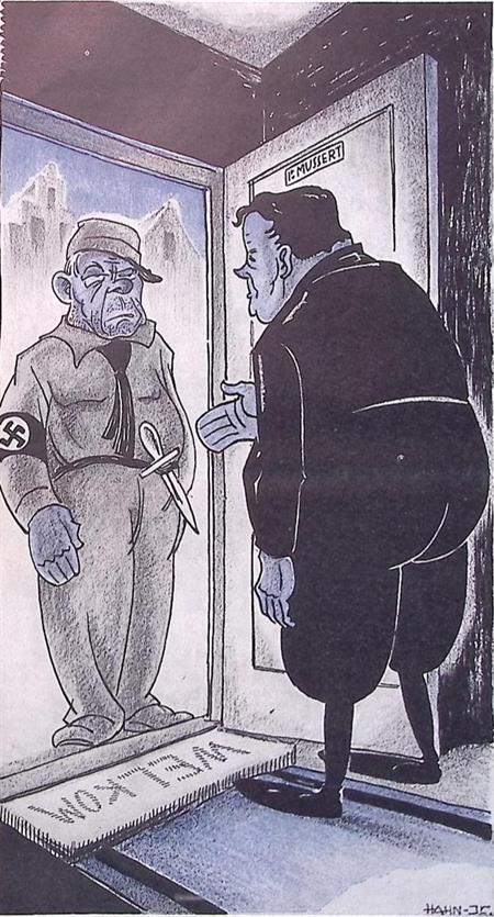 Op deze prent is Anton Mussert afgebeeld. Anton Mussert, een Nederlands politicus en ingenieur, was een van de oprichters van de NSB en collaboreerde tijdens de Tweede Wereldoorlog met de nazi's. Hij leefde van 1894 tot 1946.Anton Mussert bij de tandarts op spotprent.Op de prent is een bovenschrift te lezen: “De verouderde demo-liberale debatmethoden”. Op de prent is een ondertitel te lezen: Heb medelijden met mij en dit arme “Volk en Vaderland” (DeZwijger).De datum van uitgeving is 04-11-1933. De afmeting van deze prent is ca. 27 bij 36 centimeter.Funke Küpper maakte deze spotprent als onderdeel van de weekkrant De Notenkraker. Deze krant was een Nederlands politiek-satirisch weekblad, altijd voorzien van originele spotprenten. Deze prent is bijna honderd jaar oud. Het papier kan op plekken beschadigd zijn, zie de foto's voor de details om te zien wat de exacte staat van de prent is.