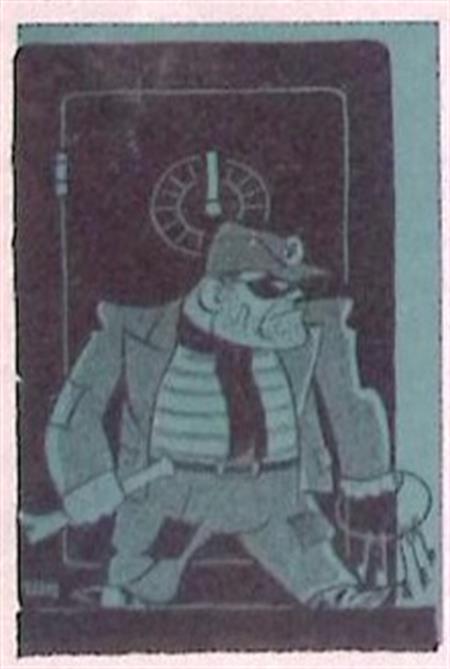 Dief voor de kluis.De datum van uitgeving is 21-03-1936.Met arbeiders en SDAP-leden als doelgroep vulde De Notenkraker tussen 1907 en 1936 het dagblad Het Volk aan met vele originele spotprenten. Deze prent is bijna honderd jaar oud. Het papier kan op plekken beschadigd zijn, zie de foto's voor de details om te zien wat de exacte staat van de prent is.