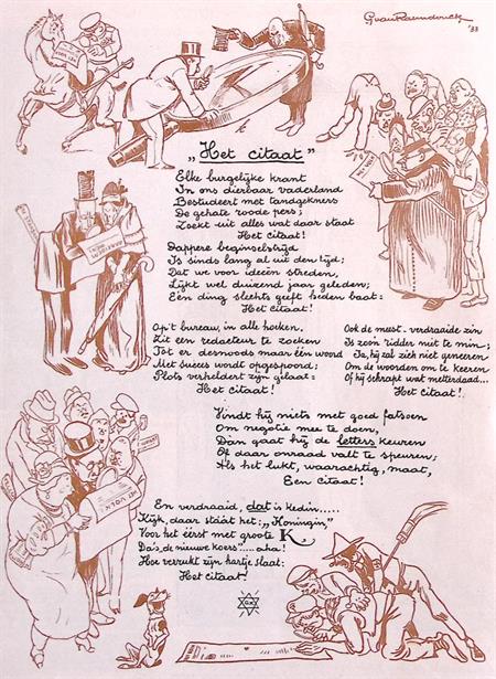 Thema's in deze prent zijn Economie en Samenleving. Economie is de wetenschap die zich richt op de keuzes die mensen maken met betrekking tot de productie, distributie en consumptie van goederen en diensten.Politiek in het bedrijfsleven op spotprent.Het bovenschrift leest: De practische sollicitant. Op de prent is een ondertitel te lezen: De patroon: “En wat is uw politieke overtuiging?” De sollicitant: “Wat meneer zal gelieven te believen.... ik ben gelijkschakelaar”.De weergegeven spotprent is uitgegeven op 17-06-1933. De handtekening van Albert Hahn Jr is onder geplaatst. De prent heeft een afmeting van ca. 23 bij 19 centimeter.Mooie spotprent, gemaakt door Albert Hahn Jr als onderdeel van de weekkrant De Notenkraker. Deze Nederlandse krant bracht veel politiek satirische prenten uit in een weekblad. Deze prent is bijna honderd jaar oud. Het papier kan op plekken beschadigd zijn, zie de foto's voor de details om te zien wat de exacte staat van de prent is.