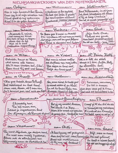 Spotprent met De Notenkraker die het hakenkruis kapot bijt