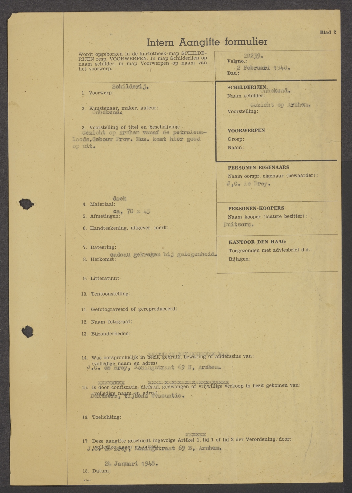SNK Aangifteformulier - Roth, G.A. - Gezicht op Arnhem, a/d Rijn, vanaf de rechteroever - uit he