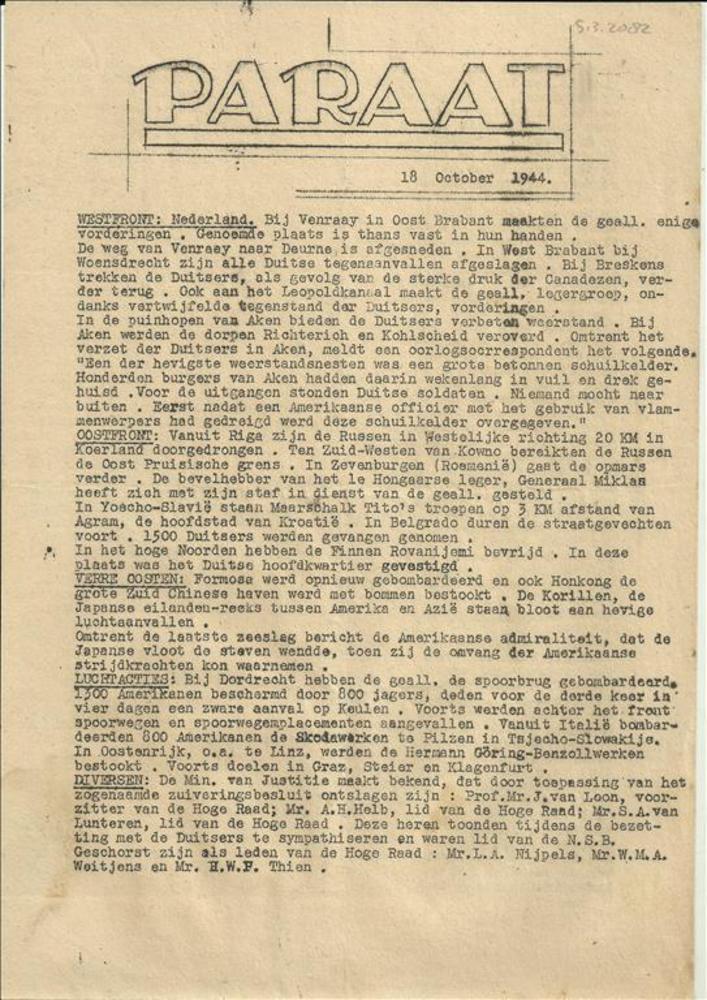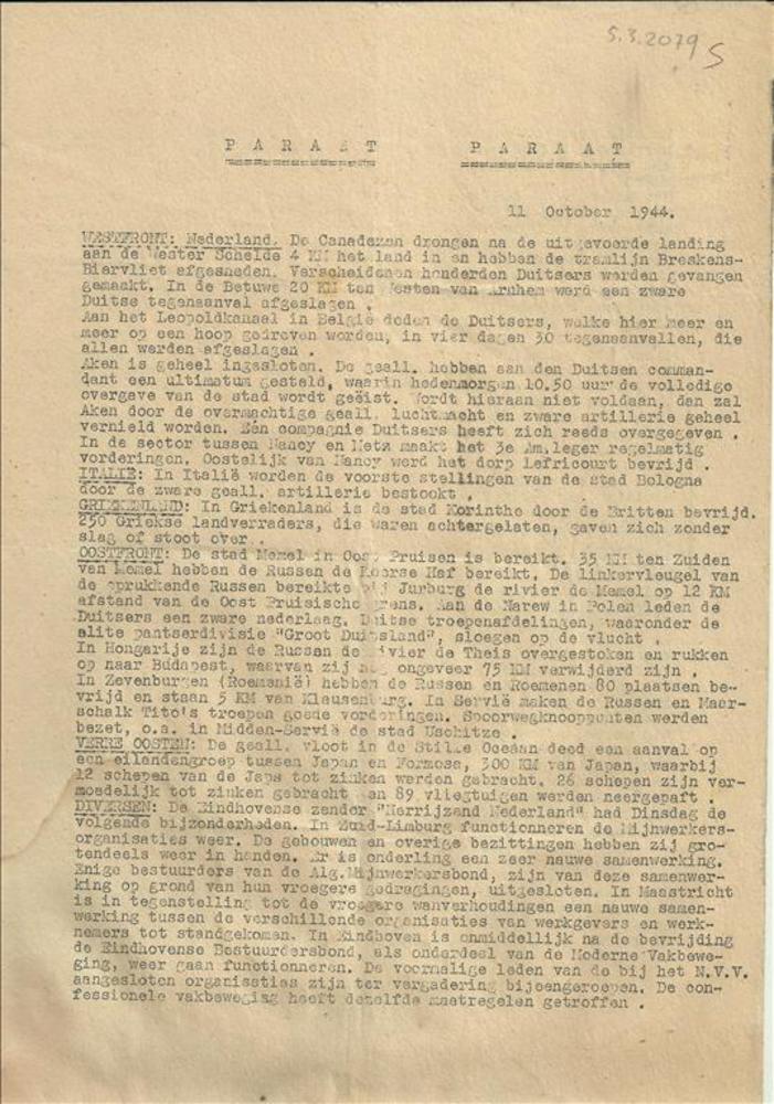 Paraat 16 oktober 1944.Nieuws van de fronten. Verre Oosten. Luchtoorlog. Diversen.