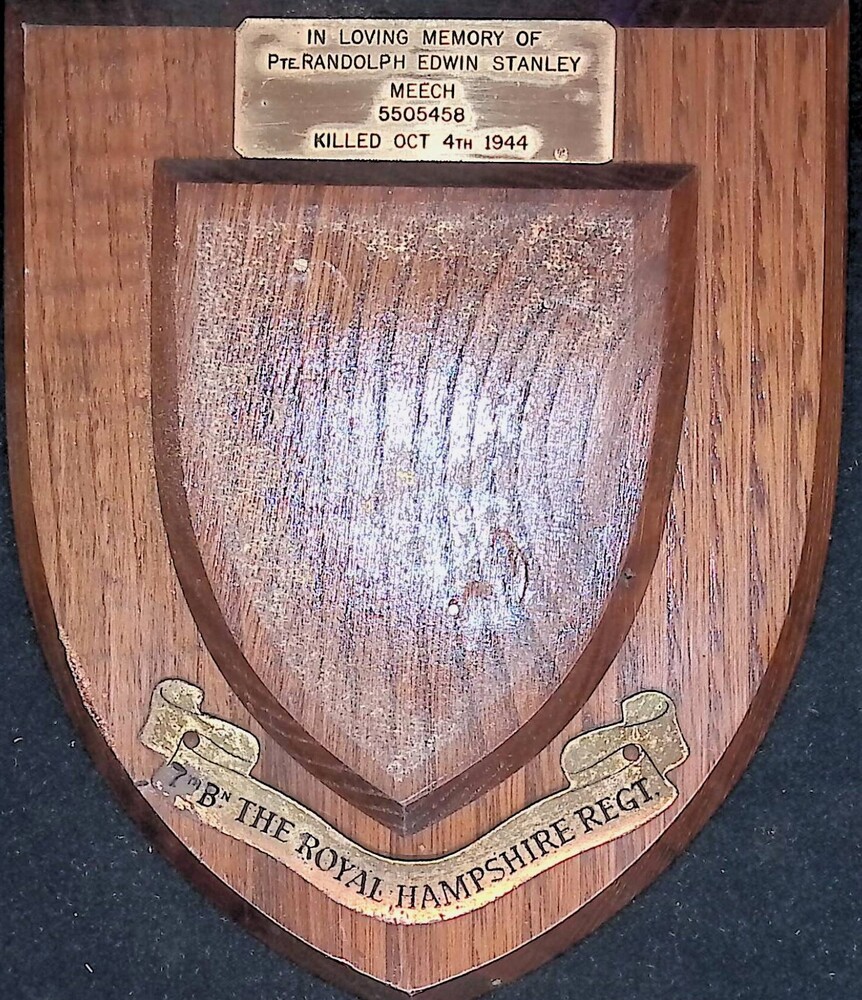 Wapenschildje, The Royal Hampshire Regiment.Robert R. Rose killed near Driel 4 oktober 1944. Het Hampshire Regiment was een infanterieregiment van het Britse leger.