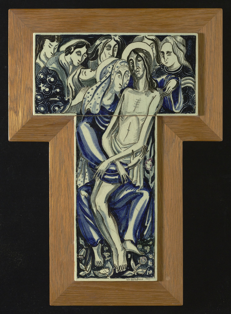 Restant van betegeling uit de badkamer van het Boeselagerhof, gebouwd ca. 1715-1720 en later Clemenshof genoemd, in Bonn. Dit stadspaleis is in de Tweede Wereldoorlog verwoest. Details komen overeen met de betegeling van het paviljoen Pagodenburg, bij paleis Nymphenburg in München. De tegels zijn van een opmerkelijk groot formaat. Uit oude beschrijvingen blijkt dat in een parkachtig landschap met galante taferelen ook de Bijbelse voorstellingen van de badende Batseba en van Susanna waren verwerkt.
