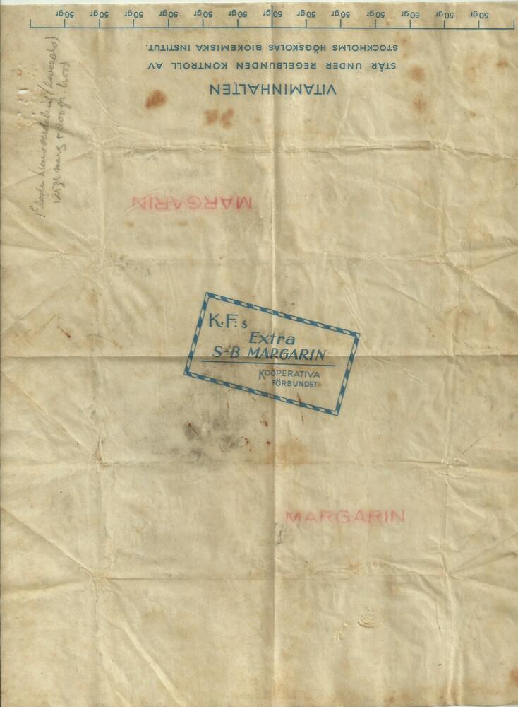 Verpakking, Elit Extra Margarin"Margarinfabrikrnas Forsäljnings-Aktiebolag.""Zweden."