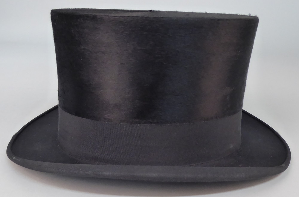 Zwarte hoge herenhoed, ripslint langs bol en bekleed op rand. Initialen langs binnenrand in metaal W.V.D. Zwarte katoenen herenhandschoenen met metalen drukknop (zwart). Kussentje voor het oppoetsen van de haren van de hoed in rood velours en grijs satijn (eerst ruw, dan glad). Hoedendoos (zwart) met lederen draaghandvat. Gedragen door echtgenoot Willem Frederik van Dijk, burgemeester van Aalburg (NB) 1955 tot 1978. Alleen gedragen bij bijzondere gelegenheden. Bestaat ook uit: T1500A - handschoen T1500B - handschoen T1500C - schuier T1500D - hoedendoos
