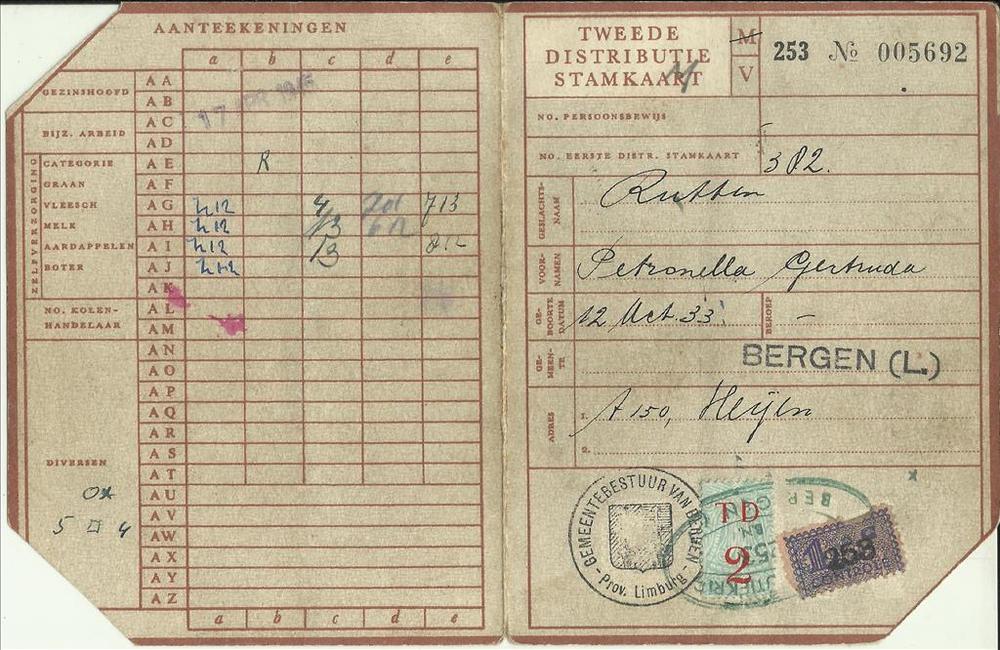 Tweede Distributiestamkaart op naam van Vinken, Annemarie, Petronella