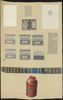 Hangemaakte collage materiaal van de Winterhulp. Onderandere te zien zijn diverse krantenknipsels, twee loterij loten van de winterhulp en een pamflet. De linkerbenedenhoek is afgescheurd.