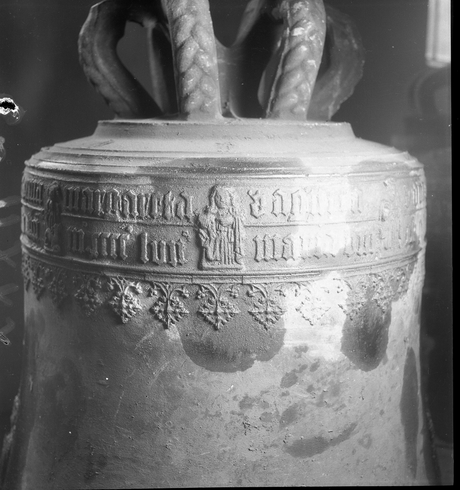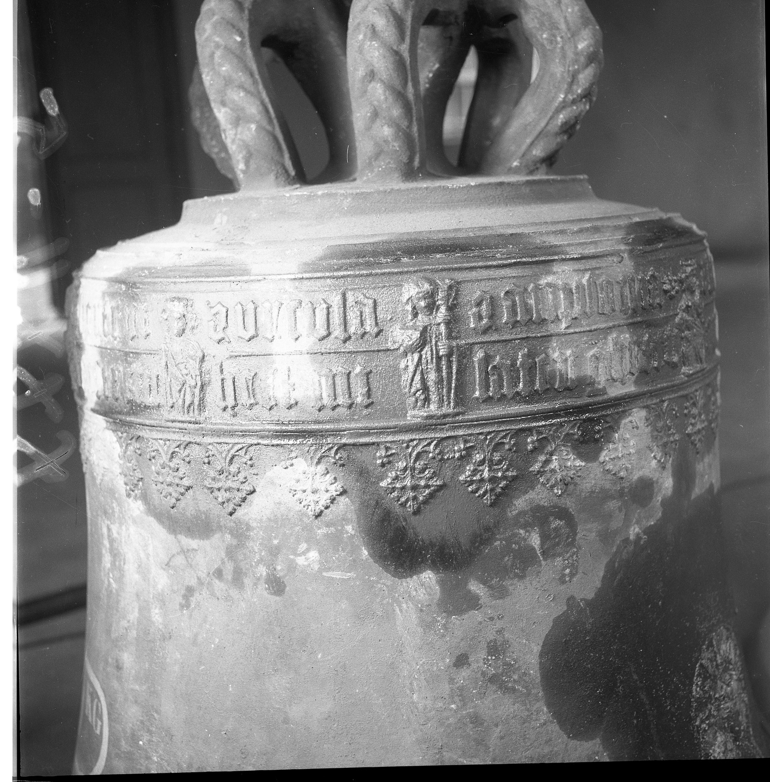 Gt: Anoniem - Gj: 14de eeuw? - Dm: 95 cm. - Gw: 540 kg. (op de klok zelf is 350 kg.