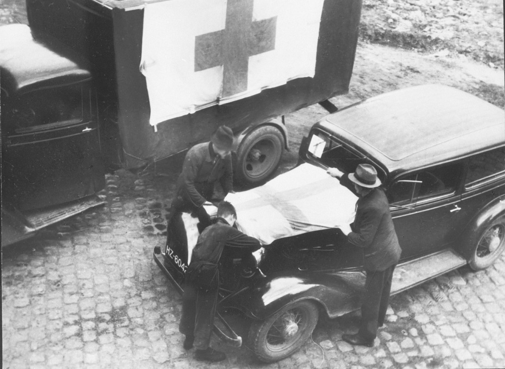 ' Het vooral tegen het einde van 1944 veelvuldig gebruikte ( en misbruikte) Rode Kruis teken' .