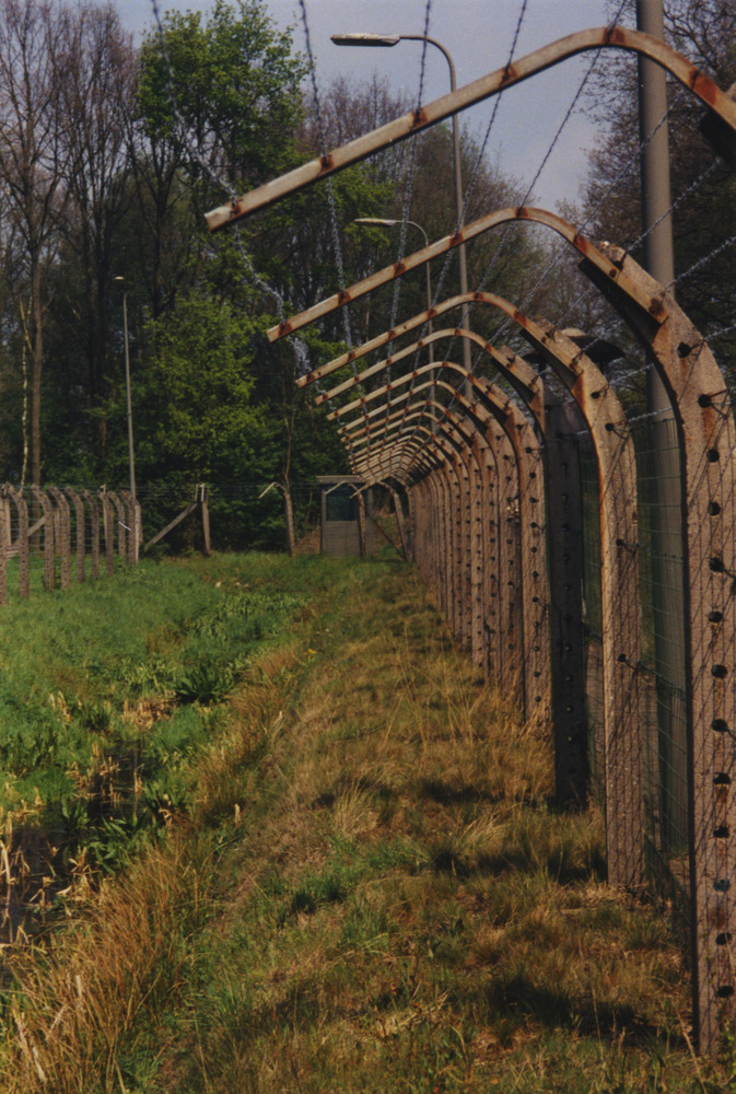 Foto afkomstig uit album van Nationaal Monument Kamp Vught van maart 1996 tot februari 1999. Prikkeldraad.