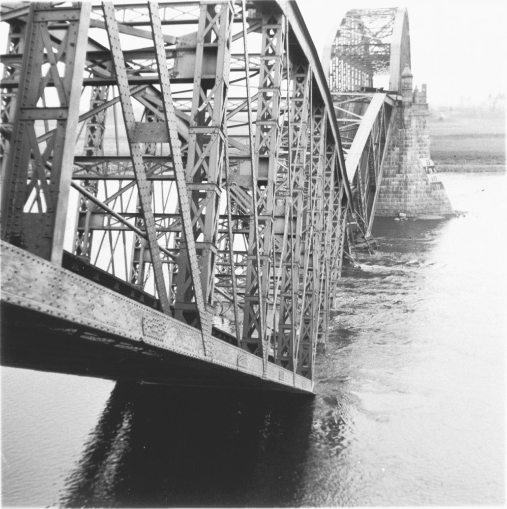 Spoorbrug over de Rijn te Rhenen. Vernield op 13 mei 1940.