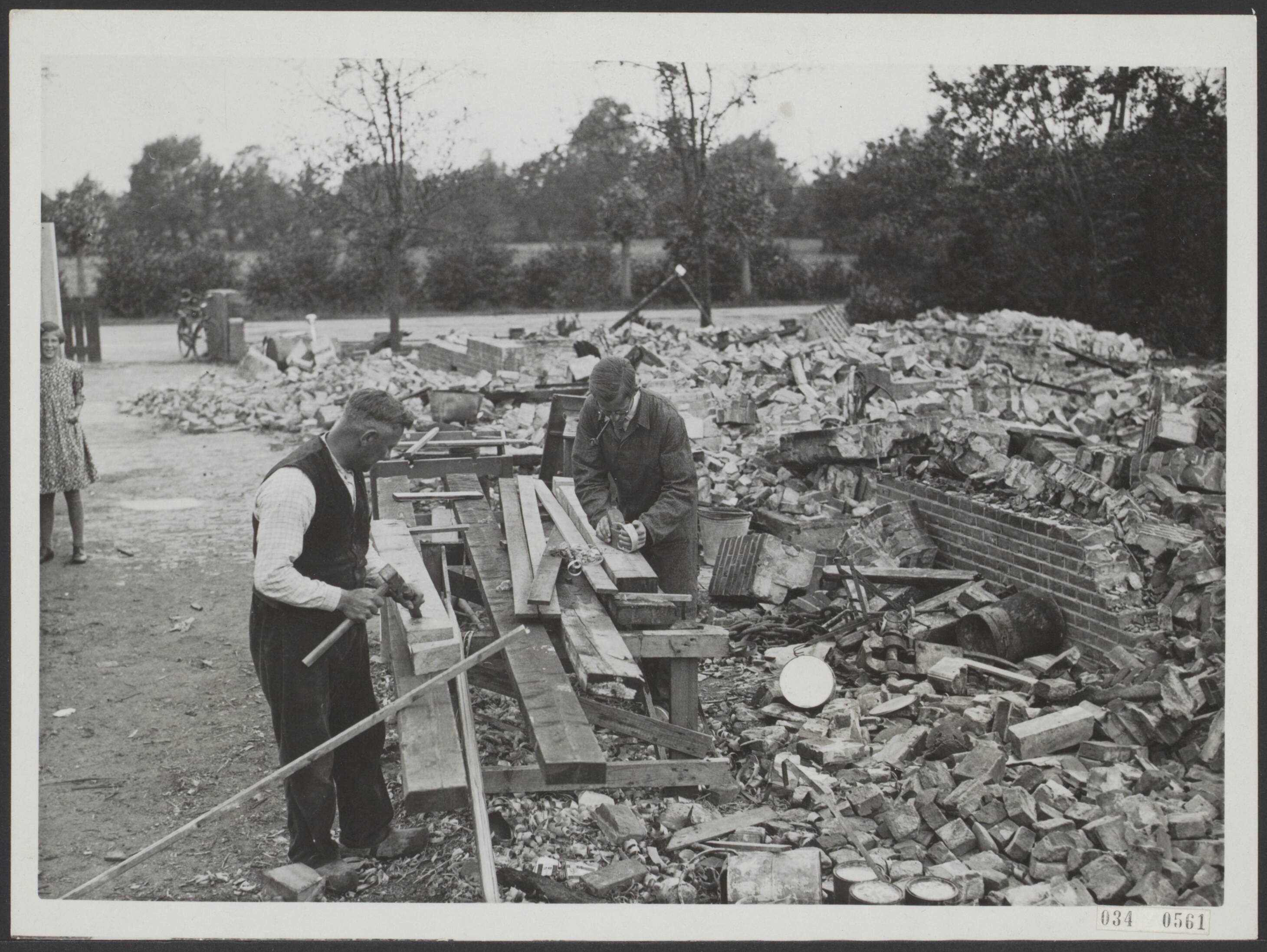 Bijschrift "Het Eemland herstelt zich, en overal slaat men de handen aan de ploeg.
