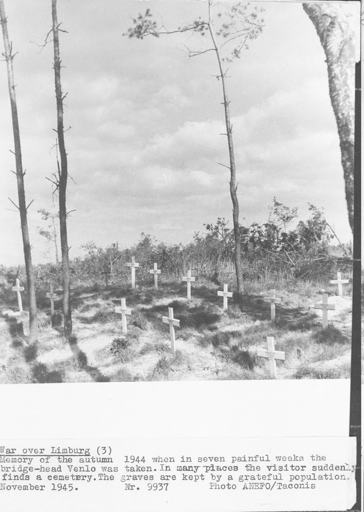 Tijdelijk soldatengraven van geallieerden die vielen in Noord Limburg. War over Limburg.