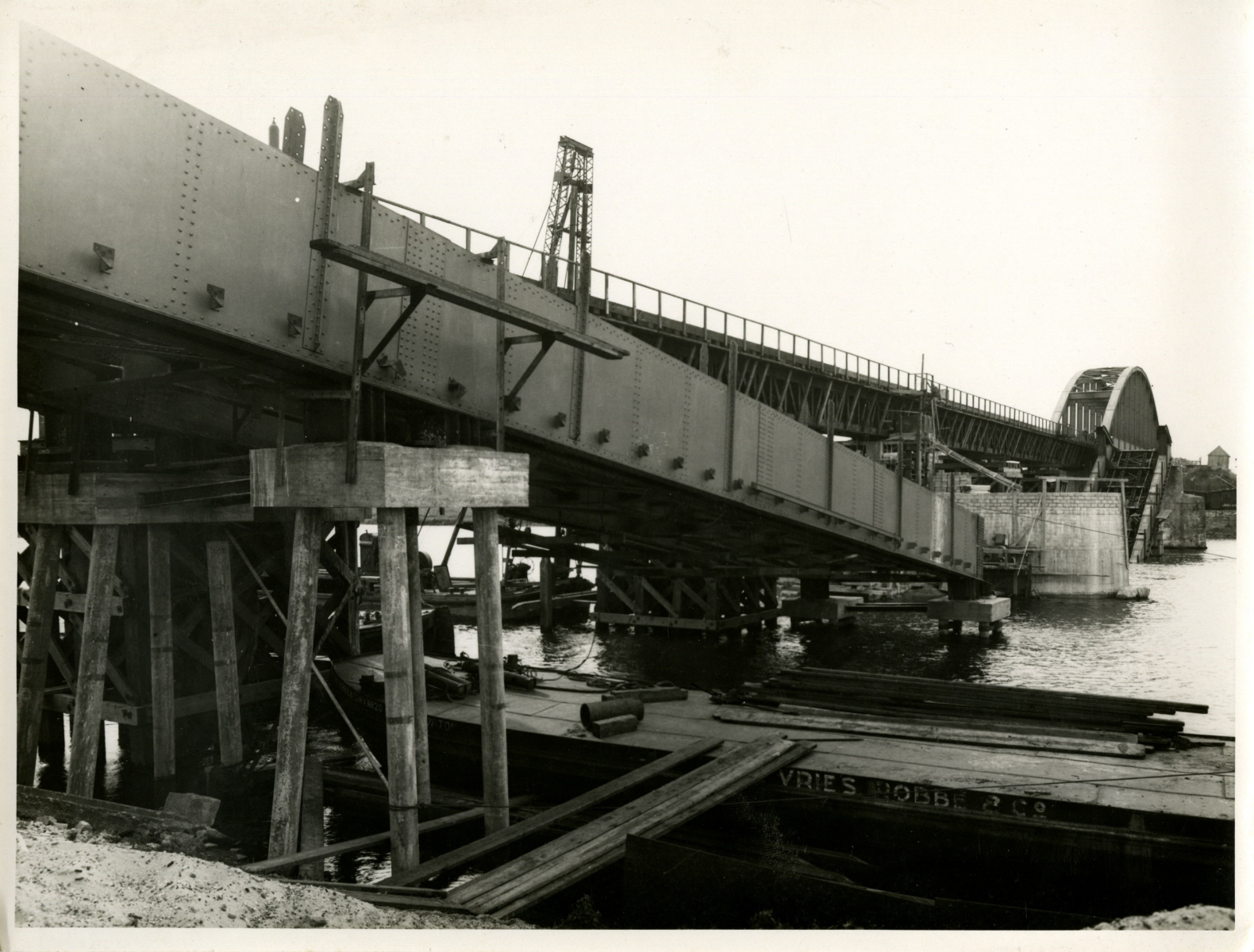 Herstelwerkzaamheden aan de vernielde brug bij Ravenstein