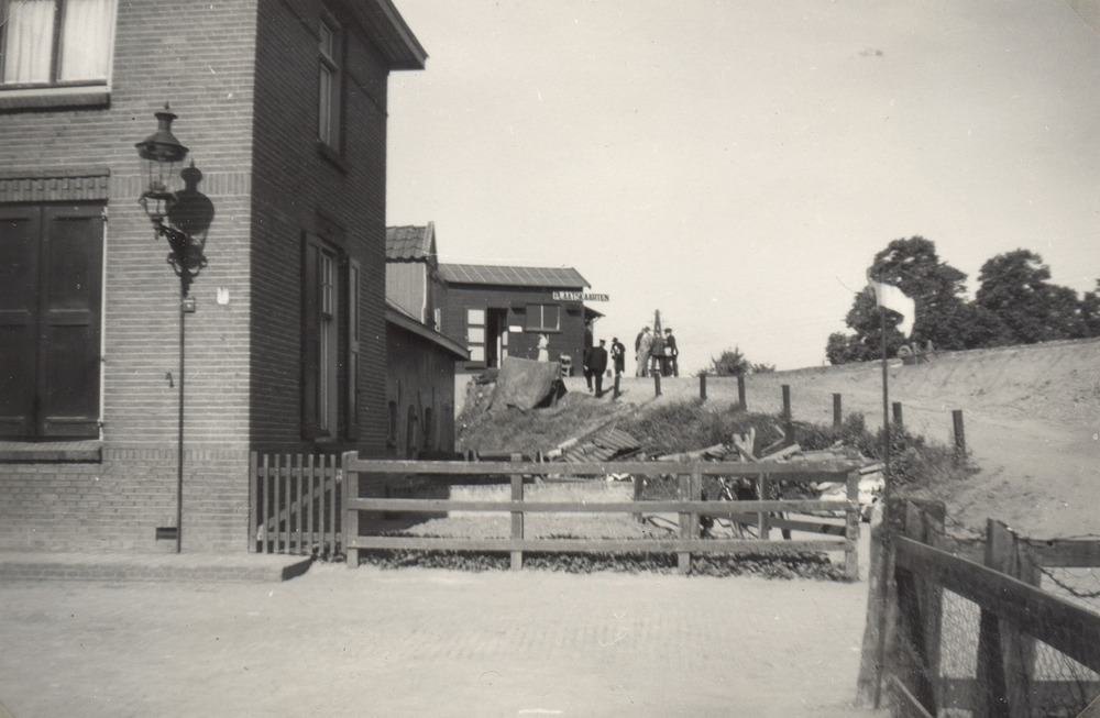 Het nood-station in De Hoven met daarachter de kazemat van waaruit heftig is geschoten.