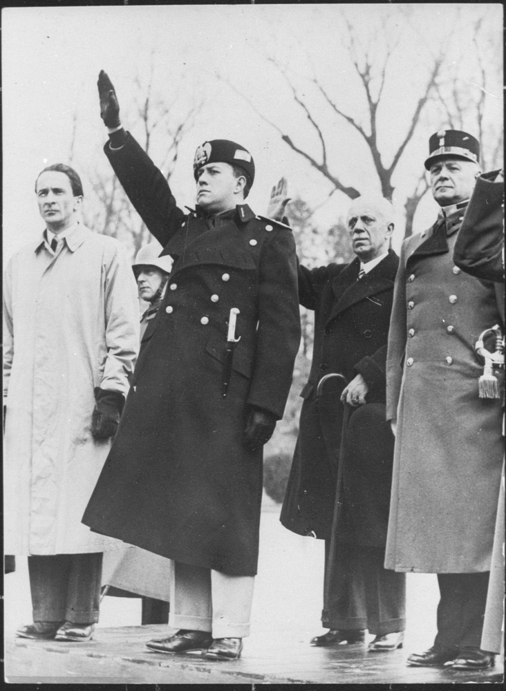 Mussolini's son-in-law inspects Austrian cadets. Vienna visit May concern monarchy restoration.